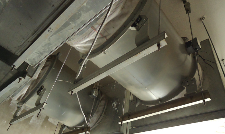 Fig. Seventy three Greenheck vane axial medium pressure fans were installed for this high temperature application.